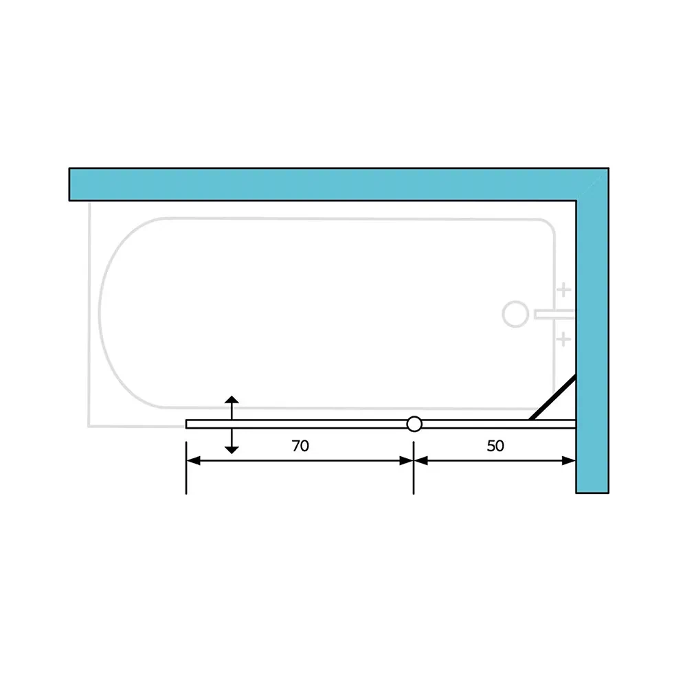 מפרט: דופן קבועה 50 ס”מ בשילוב דלת על ציר 70 ס”מ הנפתחת פנימה והחוצה. ניתן להתקנה ימין/שמאל לפי תנאי השטח. גובה 140 ס”מ