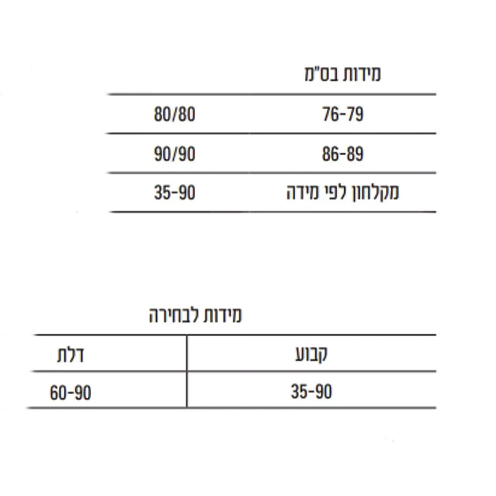 מפרט: בצד אחד דופן קבועה,(מינימום מידת קבוע 35 ס"מ)