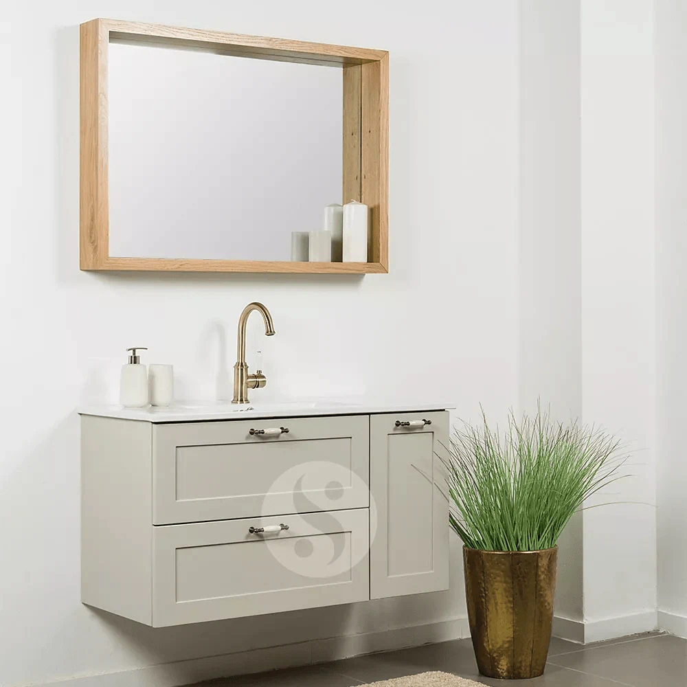 כולל 2 מגירות ודלת כיור חרס אינטגרלי ומראה